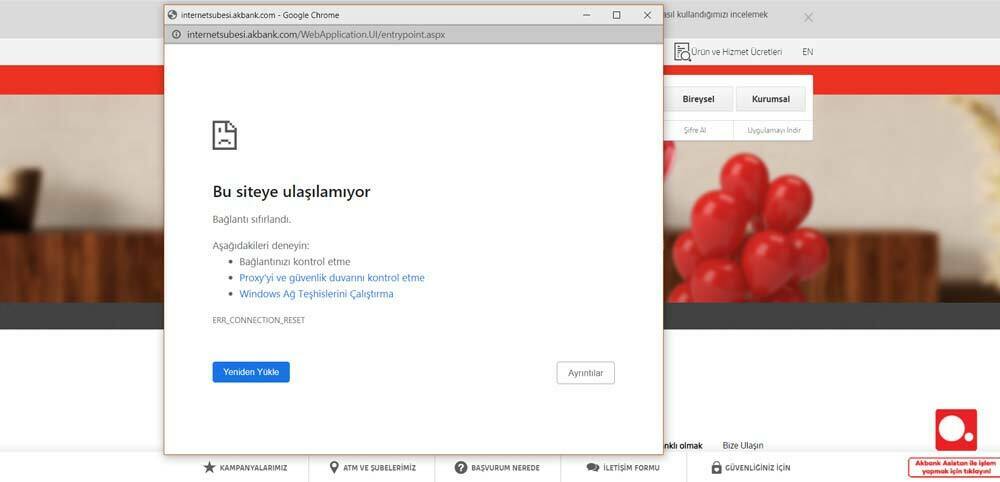 Akbank’ın internet sitesinden kullanıcı girişi yapmaya çalışanlar aşağıdaki sayfayla karşılaşıyor. Akbank Mobil de tıklandığında uygulama yanıt vermiyor.