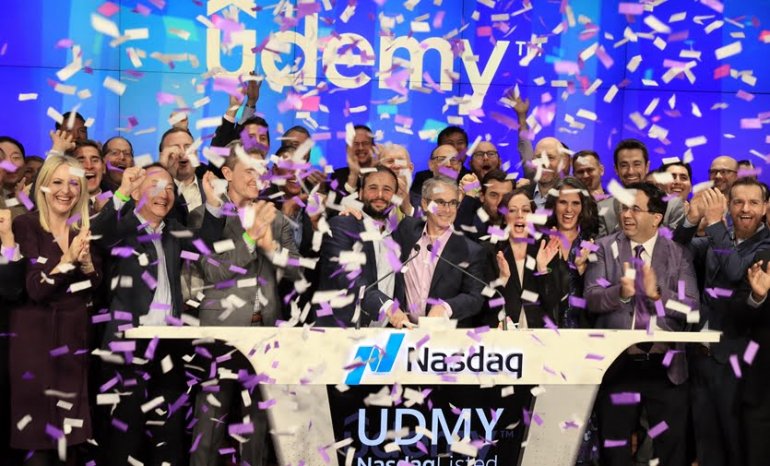 Online eğitim platformu Udemy, dün Nasdaq borsasında işlem görmeye başladı. Halka arz ile Udemy’nin değeri 3.7 milyar dolara ulaştı. Udemy’nin halka arzı hisse başına 29 dolardan gerçekleşirken, hisseleri ilk işlem gününde 27,5 dolara kadar geriledi.